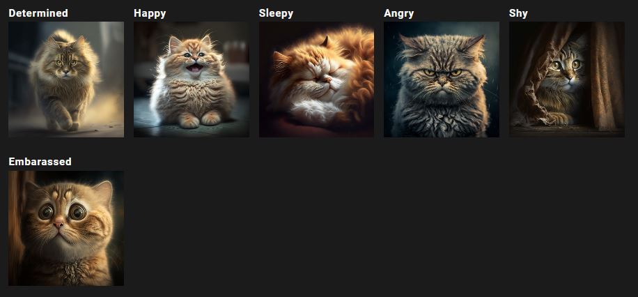 Determined / Happy / Sleepy / Angry / Shy / Embarassed