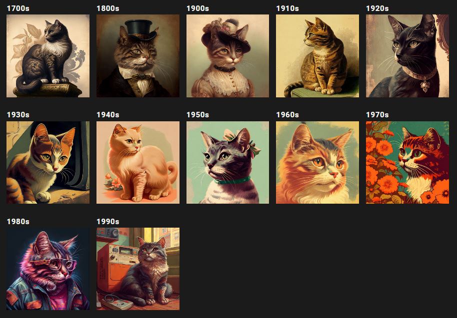 짧은 한 단어로 된 프롬프트도 미드저니의 기본 스타일로 아름다운 이미지를 만들 수 있지만, 매체, 역사적 시대, 장소 등의 컨셉을 조합하여 더욱 흥미로운 맞춤형 결과물을 만들 수 있습니다.