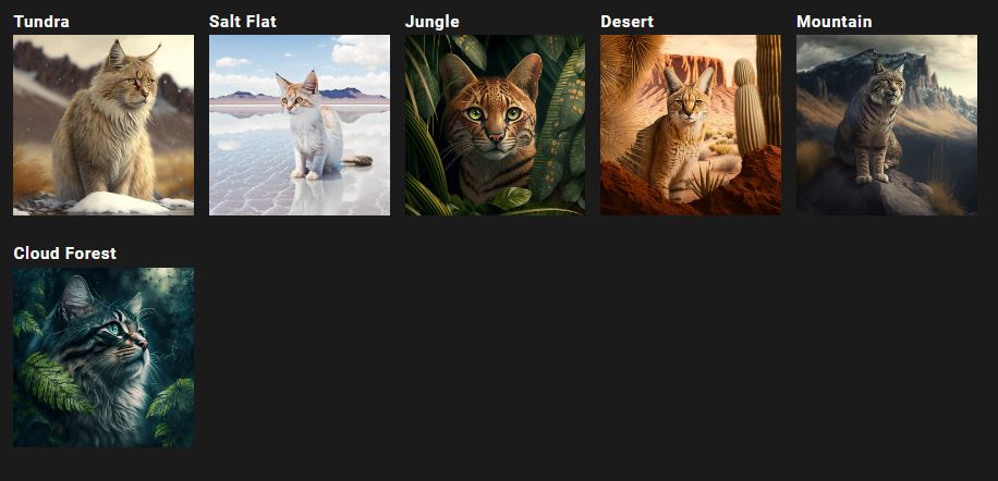 Tundra / Salt Flat / Jungle / Desert / Mountain / Cloud Forest