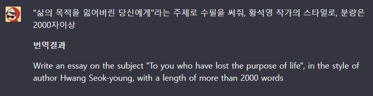 처음 chatGPT가 만들어준 수필을 "황석영 작가" 스타일로 바꿔달라고 해봅시다.